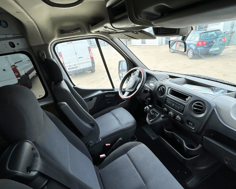 La Renault Master L3H2 ofrece una cabina amplia para 7 ocupantes, con asientos cómodos y buena accesibilidad, mientras que la zona de carga trasera permite transportar herramientas, maquinaria o materiales voluminosos sin renunciar al espacio para el equipo. Su carrocería L3H2 (batalla larga y techo alto) garantiza una de las mejores relaciones entre volumen útil y maniobrabilidad del mercado.